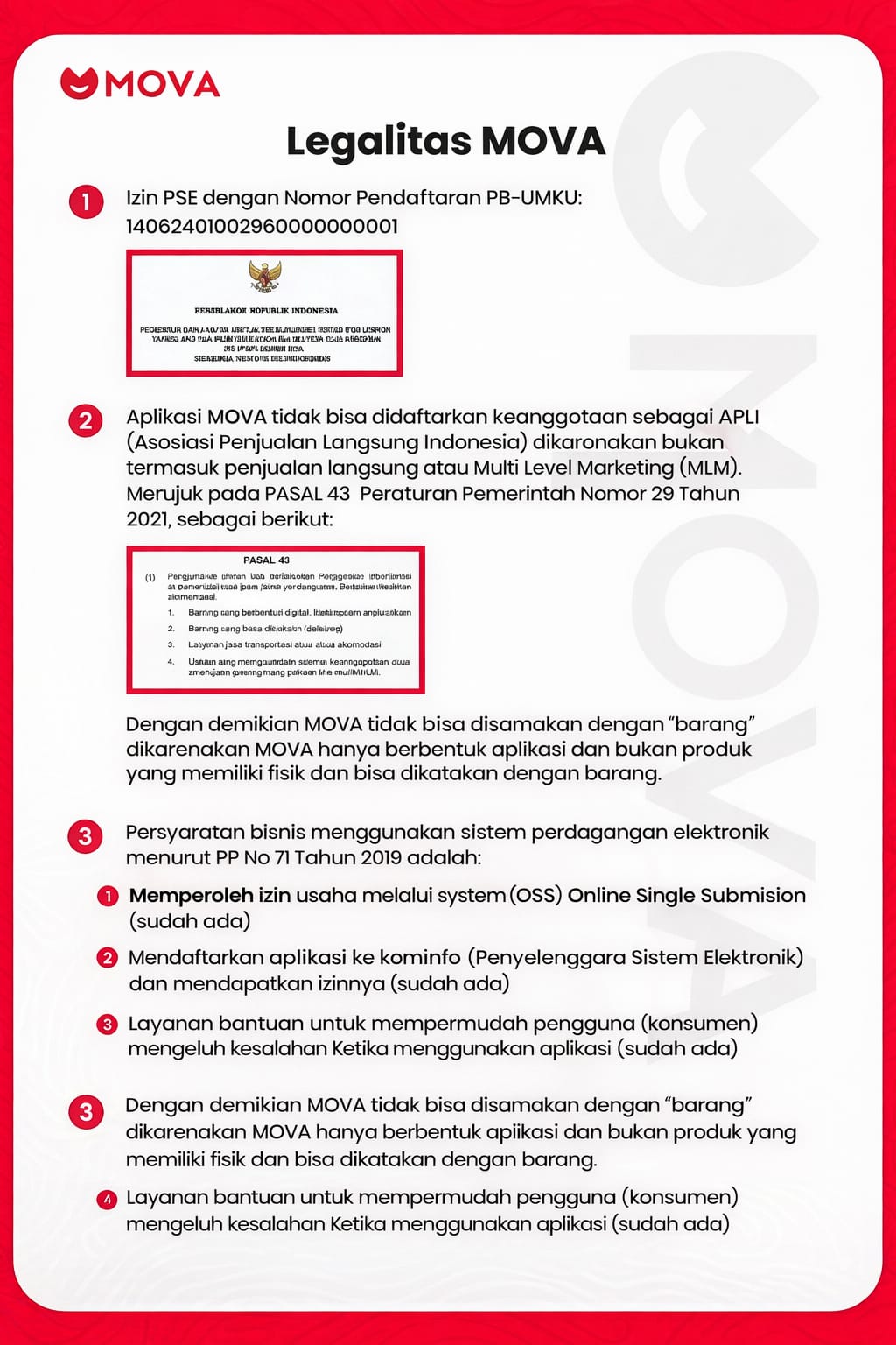 Untuk keamanan, Mova berjalan dengan sistem afiliasi berbasis transaksi (cashback & komisi), jadi bukan sekadar perputaran uang.