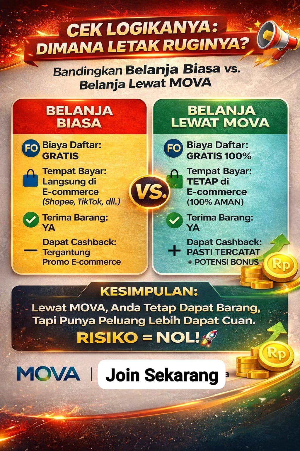 Lewat MOVA, Anda tetap dapat barang, tapi punya peluang lebih dapat cuan. RESIKO = NOL! 🚀