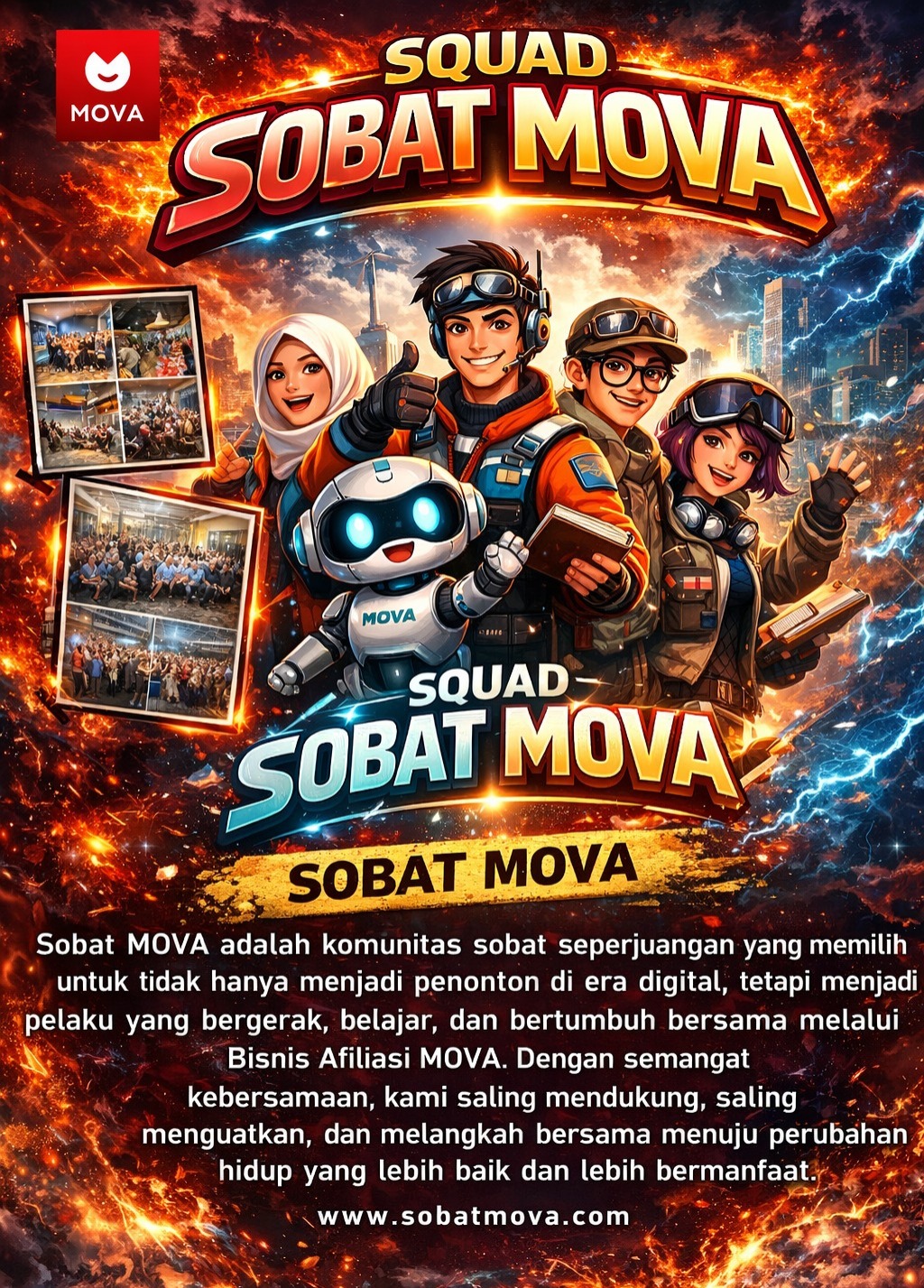 Sobat MOVA adalah komunitas sobat seperjuangan yang memilih untuk tidak hanya menjadi penonton di era digital, tetapi menjadi pelaku yang bergerak, belajar, dan bertumbuh bersama melalui Bisnis Afiliasi MOVA. Dengan semangat kebersamaan, kami saling mendukung, saling menguatkan, dan melangkah bersama menuju perubahan hidup yang lebih baik dan lebih bermanfaat.
